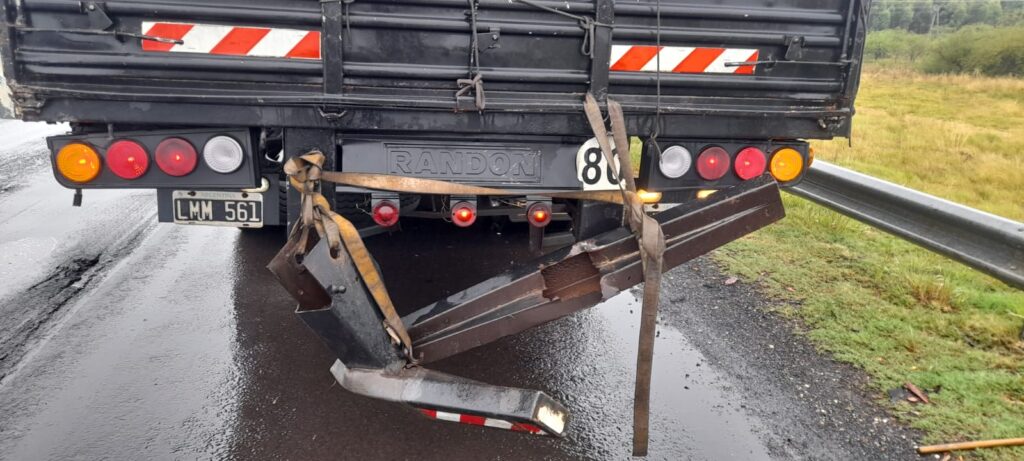 un camión dominio LMM 561 de la Empresa Ceferino que se dingia desde Misiones a Buenos Aires fue colisionado desde atrás por un automóvil marca BMW dominio AD653YV, producto de haber perdido em control al traspasar un charco de agua, para terminar despistando hacia el cantero central, mientras que otro automóvil marca Chevrolet Modelo Vectra que circulaba mas atras y en el mismo sentido tambien despisto hacia el campo a fin de evitar la colision.
