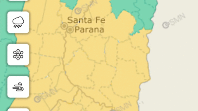 La alerta del SMN abarca gran parte del territorio provincial, incluyendo los departamentos La Paz, Villaguay, Paraná, Diamante, Victoria, Gualeguay, Islas del Ibicuy, Nogoyá, Tala, Uruguay y Colón