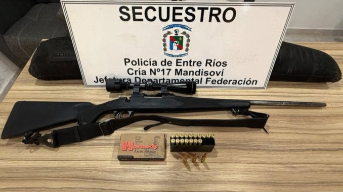 El procedimiento se realizó en el marco de una causa por amenazas y culminó con el secuestro de una carabina calibre .308 y municiones, quedando todo a disposición de la Justicia.