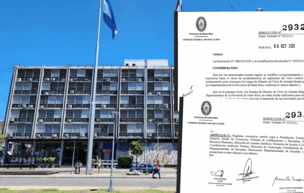 A través de la resolución N° 2.932, del 6 de este mes, Educación extendió «la vigencia de la resolucion N° 1882/24 CGE y su modificatoria resolucion N° ‘3395/24 CGE para garantizar la cobertura de cargos de maestro de ciclo de jornada simple para todos los departamentos de la Provincia de Entre Rios por el Ciclo Lectivo 2025».
