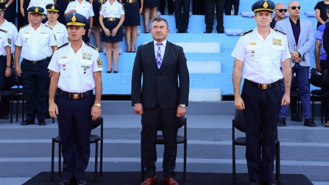 Este miércoles por la tarde, el ministro de Seguridad y Justicia, Néstor Roncaglia, presidió el acto en la Escuela de Policía Doctor Salvador Maciá, en el que el jefe de Policía, Claudio González, puso en funciones a los nuevos directores y subdirectores que integrarán la Plana Mayor de la fuerza.