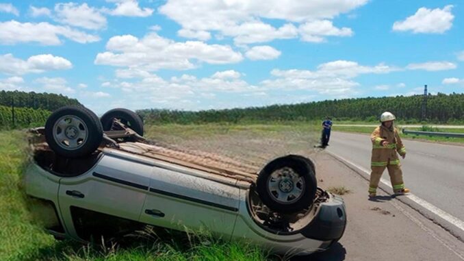 A pesar del vuelco, ninguno de los ocupantes sufrió heridas, solo se registraron daños materiales en el vehículo.