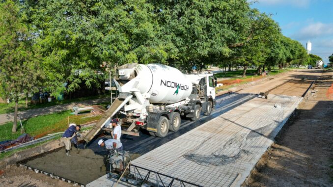 La obra de pavimentación de la avenida 25 de Mayo avanza de manera sostenida en el tramo comprendido entre calles Rivadavia y Pablo Stampa.
