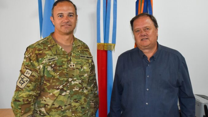 El Intendente Marcelo Borghesan recibió el viernes, en su despacho, al teniente coronel Martín Bilibio, Jefe del Regimiento de Caballería de Tanques 7 “Coraceros Coronel Ramón Estomba”, quien asumió dicha función en diciembre del año pasado. Durante el encuentro, las autoridades dialogaron sobre diversos temas institucionales vinculados a las acciones de cooperación mutua que se desarrollan entre la unidad militar y el Municipio.