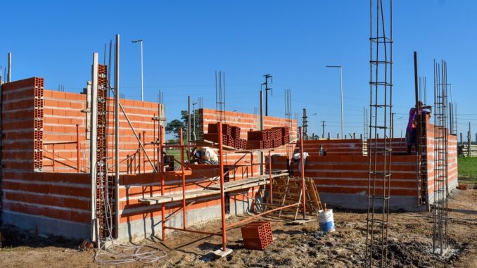 En el predio del Área Industrial de Chajarí con aportes públicos y privados, se está construyendo un Salón de Usos Múltiples (SUM) en un lote municipal ubicado en el sector del ingreso principal de la Autovía Nacional Nº14.