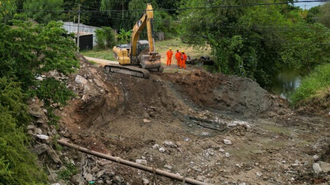 En el lugar se realizan los primeros trabajos destinados a la construcción de una nueva alcantarilla tipo cajón de hormigón armado, de 4 luces.