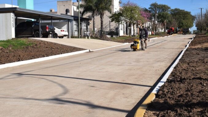 La obra dio comienzo a principios del mes de julio. Allí se comenzaron a realizar los trabajos de recambio de conexiones establecidas en la red de cloacas y luego se efectuó lo propio en la red de agua corriente. Realizados estos trabajos se dio inicio con el movimiento de suelo por personal municipal, colocación de suelo cal y compactado del terreno, y luego se procedió al colado del hormigón.