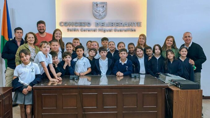 En el marco del programa “Concejo de Puertas Abiertas”, alumnos de 4° grado de la Escuela Primaria del Marista visitaron el recinto deliberativo de Chajarí. Conocieron a los concejales, el funcionamiento de las comisiones y el histórico espacio “Coronel Guarumba”, donde se realizan las sesiones.