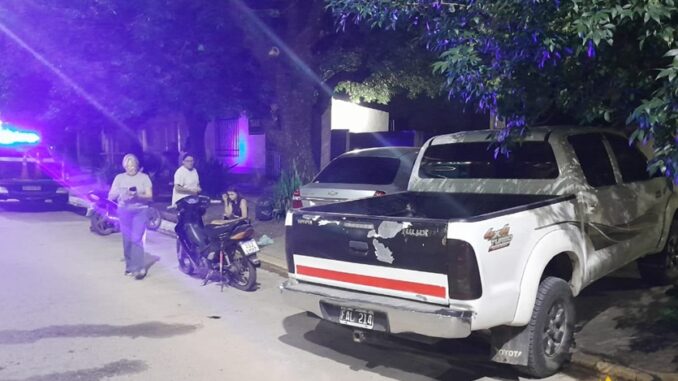En dicho lugar colisionan una motocicleta marca Guerrero DL 110cc conducida por una mujer de 19 años que circulaba Avenida Belgrano hacia calle Martin Fierro y una Pick-up marca Toyota Hilux conducida por una mujer de 59 años quien al salir de su garaje marcha atrás no logra ver a la motociclista impactando con ella.