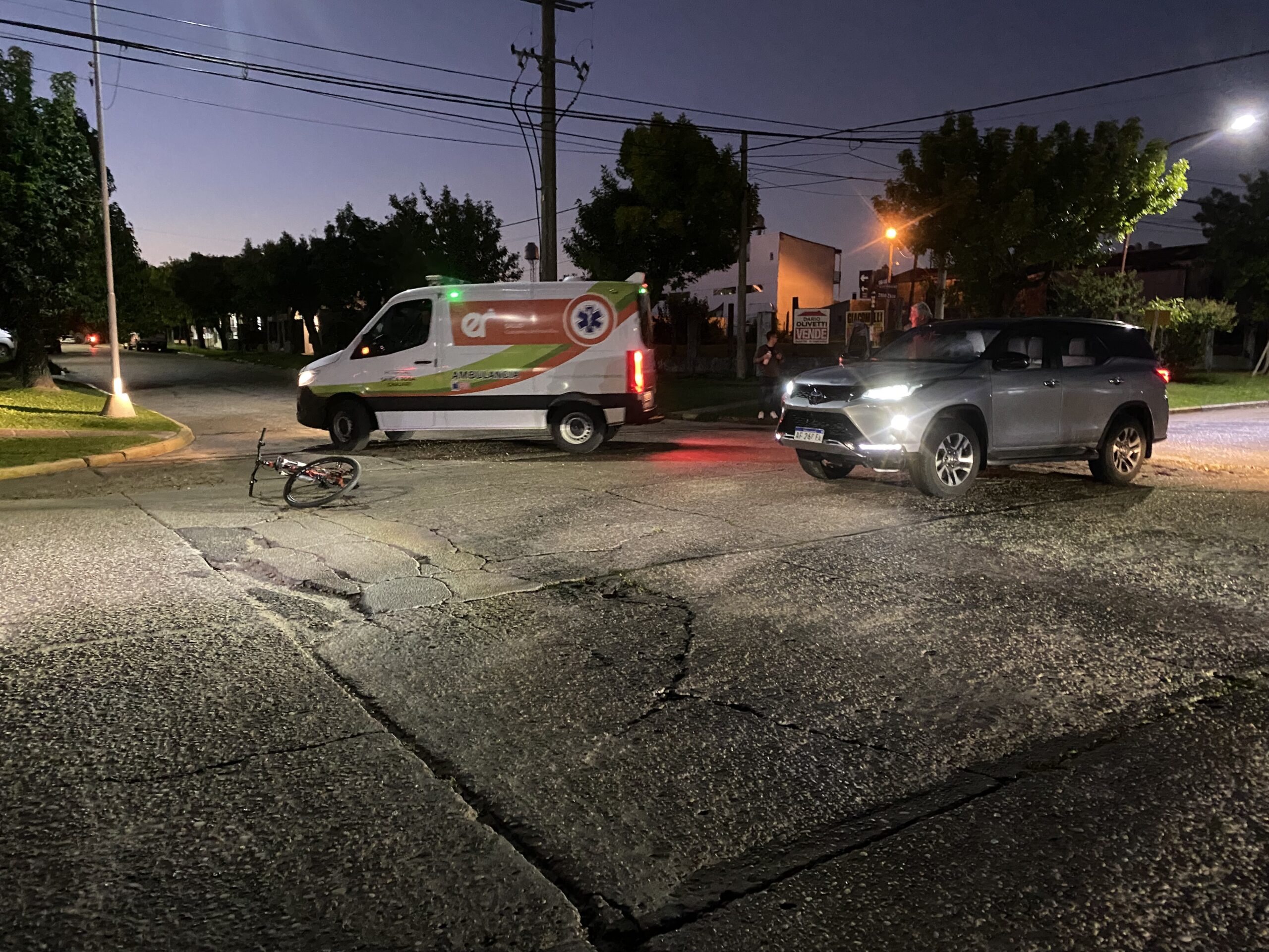 El siniestro ocurrió este jueves cerca de las 19 en la intersección de San Martín y 3 de Febrero. La víctima, que circulaba en bicicleta, fue asistida en el lugar y trasladada al hospital.