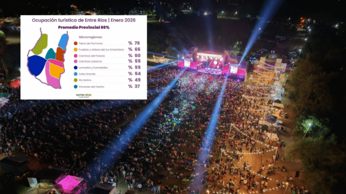 La Secretaría General de la Gobernación, a cargo de Mauricio Colello, presentó a través del Ente Mixto de Turismo de Entre Ríos (Emturer) los resultados estadísticos correspondientes a enero de 2026, elaborados a partir de la información brindada por los municipios y organizados por microrregiones. Durante el período, la provincia alcanzó un promedio de ocupación del 66 por ciento en plazas hoteleras y parahoteleras (hospedajes, bungalows, cabañas, casas y departamentos) y recibió un total de 2.085.383 visitantes.