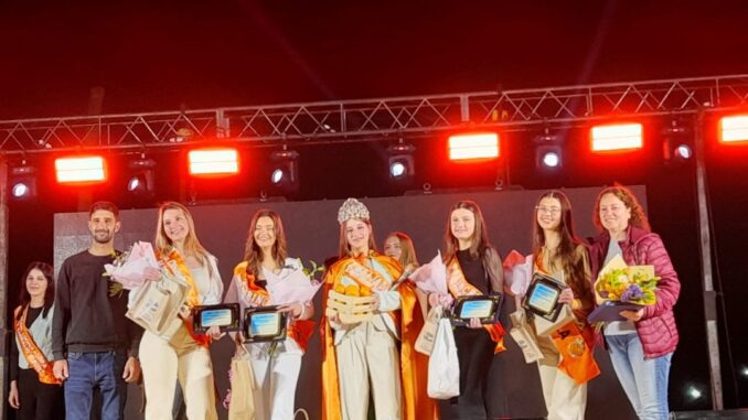 Minutos antes de la actuación de Santi Cairo, tuvo lugar uno de los momentos más esperados de la fiesta con la coronación de la nueva Embajadora del “Pueblo de las Mandarinas”.