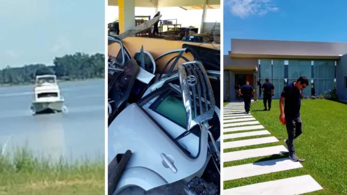 Juan Antonio Carniel y su cuñado Manuel Centurión llevan una vida de millonarios en la ciudad de Concordia, ostentando el lujo sin tener ningún trabajo ni actividad legal conocida. Se mueven en ámbitos sociales acomodados, residen en barros privados, frecuentan el ambiente del rugby, convocan a fiestas en propiedades con vistas al lago, viajan por el mundo y cuentan con desarrollos inmobiliarios en el centro. Centurión tiene dos hijos trabajando en la Justicia. Dos investigaciones paralelas de la Policía de Concordia y de Prefectura, en la Justicia Federal, señalan que el origen de la fortuna es el robo y venta de camionetas de alta gama, así como sus autopartes y repuestos. También estaban en el negocio del cambio de dinero, con viajes permanentes hacia Uruguay. En los allanamientos de este viernes encontraron desde camionetas robadas y un desarmadero hasta mucho dinero y armas de fuego. Por el momento, no hay detenidos.