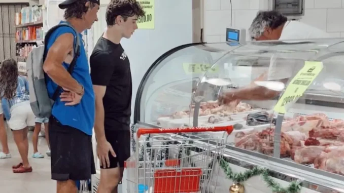 Durante la tarde del 26 de diciembre, Colapinto fue visto recorriendo un supermercado del pueblo junto a su padre, Aníbal. En imágenes que comenzaron a circular rápidamente, se lo observa en una carnicería local, mirando los cortes de carne y conversando con el personal del lugar.