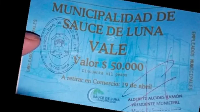 Los «bonos alimentarios» como parte de pago del salario ya están operativos en el Municipio de Sauce de Luna y alcanzan a 165 empleados. La medida había sido anunciada hace días por el intendente.