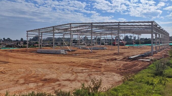 En dicho predio, de acuerdo a lo que pudo verificar un cronista de Diario Río Uruguay, la obra ya está en la etapa de montaje de grandes galpones, que a futuro serán los depósitos y salón de comercialización. Un responsable de las tareas que allí se desarrollan, se limitó a decir que se trabaja con el objetivo de concluir en el mes de septiembre.
