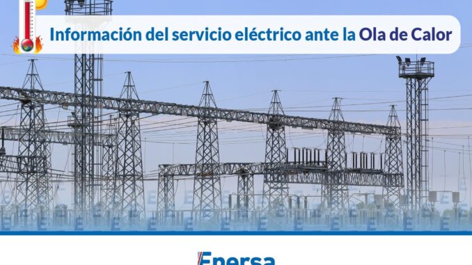 Debido a las altas temperaturas que se registran en Entre Ríos de manera sostenida, Enersa informa que se encuentra monitoreando de forma permanente el comportamiento de la demanda eléctrica en todo el territorio provincial, ante la posibilidad de que se alcancen valores elevados de consumo en el marco de la actual ola de calor.