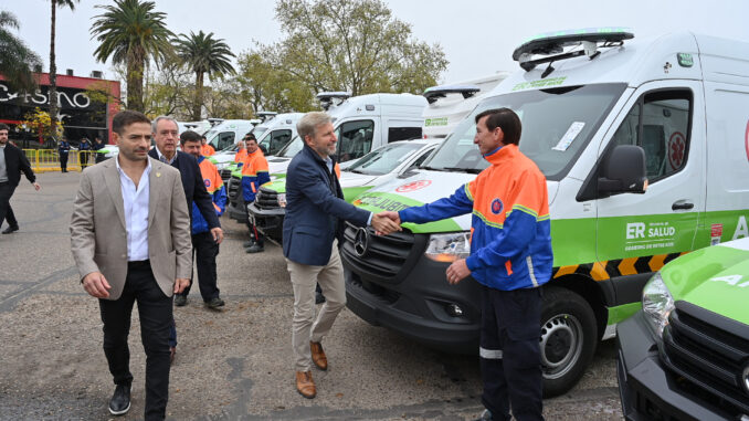 El gobernador Rogelio Frigerio recibió ambulancias y equipamiento de salud de la Comisión Técnica Mixta (CTM) de Salto Grande. En la ocasión, resaltó la puesta en marcha de una red de traslados interhospitalarios, basada en criterios profesionales; y remarcó la incorporación de equipos de telemedicina, que modernizan el sistema sanitario entrerriano.