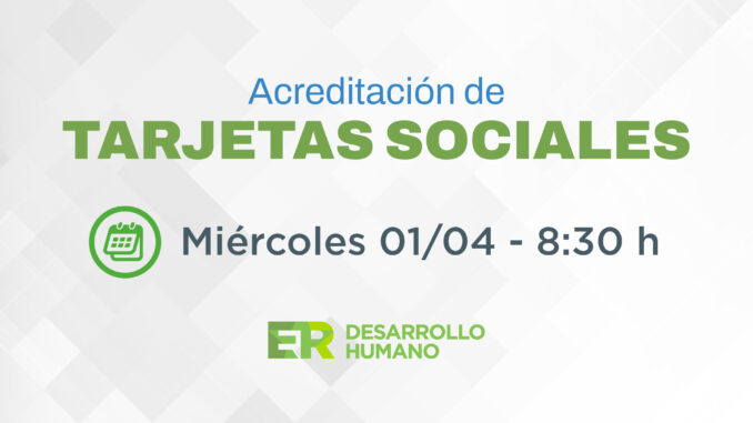 La Secretaría de Gestión Social del Ministerio de Desarrollo Humano, informa que este miércoles 1 de abril se habilitarán los saldos de las tarjetas sociales, a partir de las 8.30.
