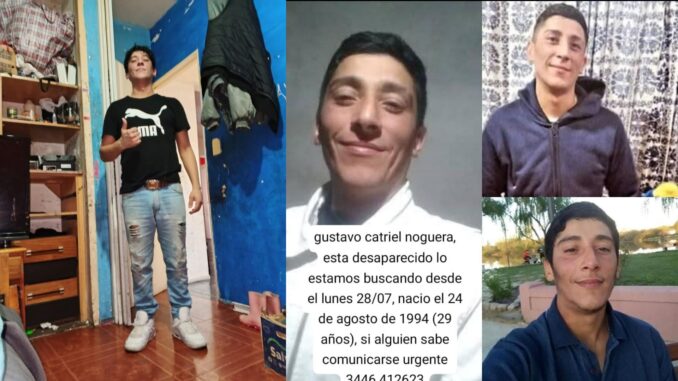 Familiares y amigos buscan intensamente a Gustavo Catriel Noguera, un joven de 30 años, quien se encuentra desaparecido desde el pasado lunes 28 de julio, cuando fue visto por última vez al salir de su trabajo a las 6 de la tarde.