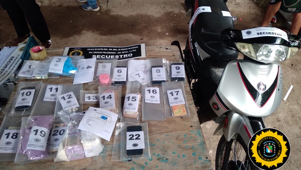 La Policía de Entre Ríos, a través de la Dirección General de Drogas Peligrosas, concretó un contundente operativo antidrogas en el Departamento La Paz, logrando desarticular una maniobra vinculada a la venta de estupefacientes a menor escala, con detenciones, secuestro de estupefacientes y una importante incautación de elementos probatorios.