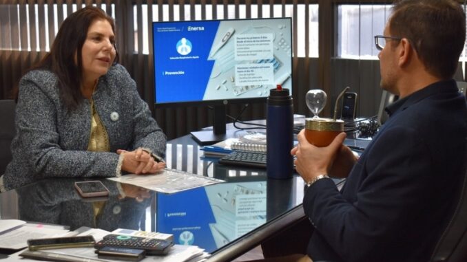 Horas atrás la diputada provincial, Gabriela Lena se reunió con Uriel Brupbacher, presidente de ENERSA, para llevarle las demandas y pedidos que distintas organizaciones de Chajarí quienes según ella dijo, “le hicieron llegar.”