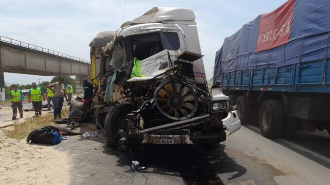El accidente ocurrió en el kilómetro 109 de la ruta nacional 12, en el carril norte sur. Uno de los vehículos chocó de atrás al otro. Por el impacto, se produjo el vuelco de uno de los camiones.