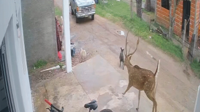 Sin embargo, tras una larga percusión y luego de que le atravesaran una camioneta en su camino (como se ve en el video captado por una cámara de seguridad de un domicilio), el ciervo fue acorralado y atrapado por un grupo de personas. Una de ellas logró tomarlo de las astas y voltearlo, hasta que con la ayuda de otros individuos pudo enlazarlo e inmovilizarlo.