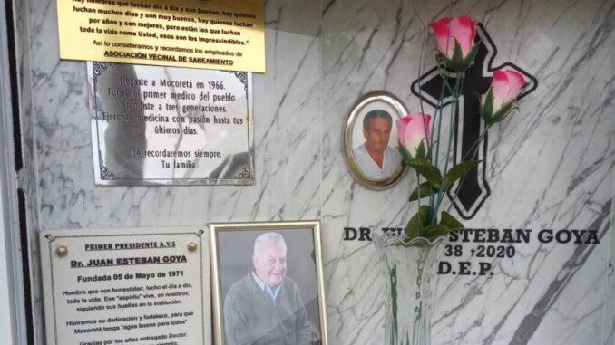 Al cumplirse hoy los 52 años, se colocaron dos placas recordatorias en el cementerio de Mocoretá en homenaje al Dr. Juan Esteban Goya, con mensajes muy sentidos por parte de la Comisión actual y los empleados de la Asociación.