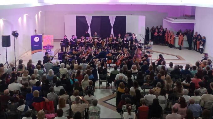 Los presentes disfrutaron del repertorio que ofrecieron los cien músicos en escena, con la participación de Coral Cantiamo de Chajarí, la Orquesta Municipal San Salvador, el Coro Polifónico municipal de San Salvador y Coral “Voces Libres” de Federación.