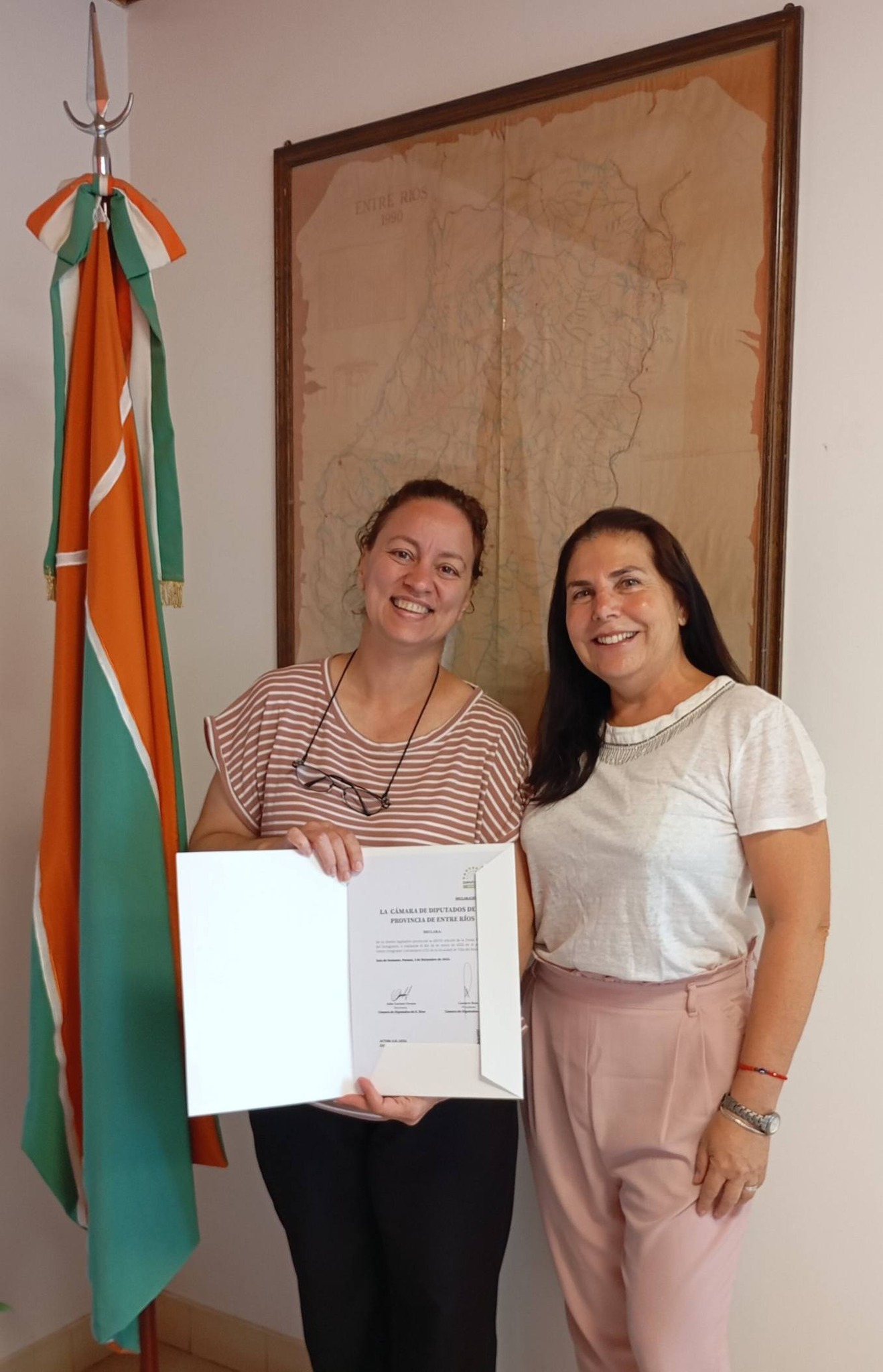 Este martes 6, la presidente municipal Vanina Perini recibió en su despacho a la diputada provincial Esc. Gabriela Lena, quien hizo entrega de la Declaración N.º 701, mediante la cual la Cámara de Diputados de la Provincia de Entre Ríos declara de Interés Legislativo Provincial la realización de la XXVIII Fiesta Provincial del Inmigrante.