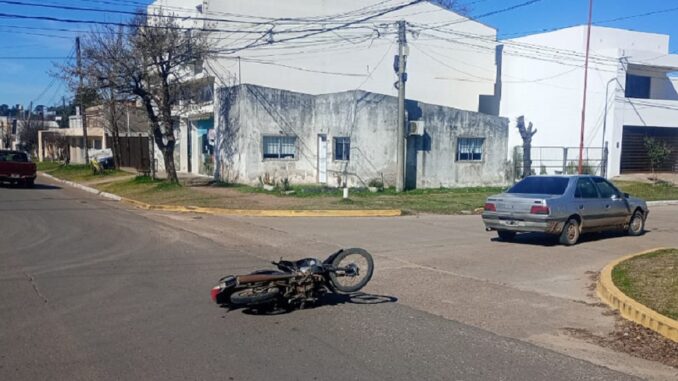 Chocaron una motocicleta y un automóvil en Av. Belgrano e Irigoyen de Chajarí, lesiones leves para el motoquero