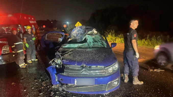 Un matrimonio de adultos mayores procedente de la localidad de Crespo fue víctima de un violento accidente de tránsito, anoche, sobre Ruta Nacional 12, a metros del ingreso Paraná/San Benito. Fuentes policiales comunicaron que el impacto se produjo entre un auto Citroën C-Elysee (en el que viajaba la pareja) y un camión de carga Mercedes Benz al mando de un hombre oriundo de Cerrito.