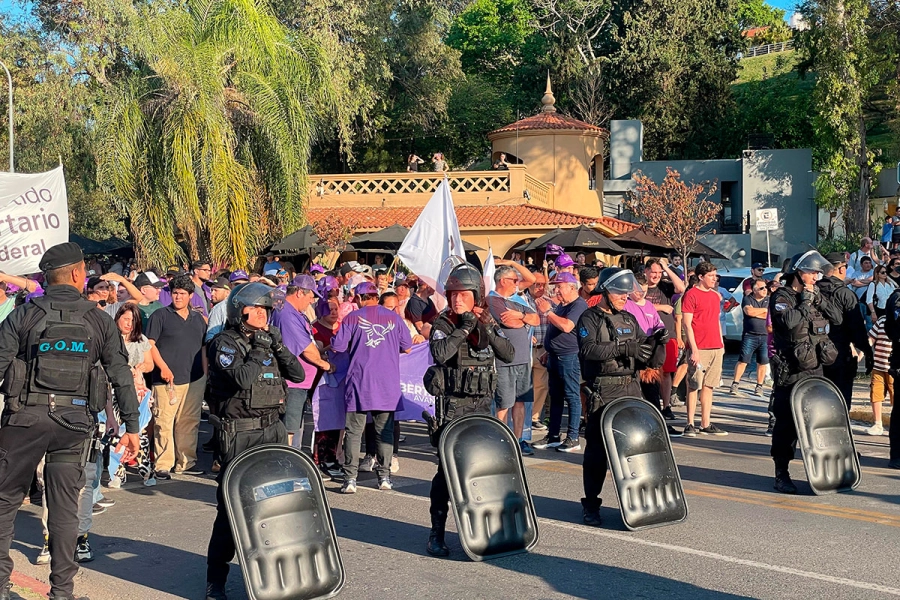 En paralelo a la agenda presidencial, manifestantes y simpatizantes libertarios se concentraron en la zona, generando momentos de tensión controlados por un fuerte despliegue policial.