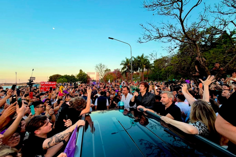 El presidente hizo un breve recorrido por la costanera baja de la ciudad de Paraná, en medio de un tumulto de seguidores y un importante despliegue de fuerzas federales y provinciales. Con un megáfono, saludó a sus libertarios y brindó un escueto mensaje.