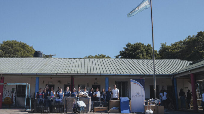 Además de la instalación de los 17 equipos de aire acondicionado, se entregaron elementos de fisioterapia y uniformes a la Escuela Integral N°16 Dr. Arturo Illia. La acción tuvo como objetivo continuar acompañando el desarrollo escolar de más de 90 alumnos de nivel primario que asisten a la institución, apadrinada por la Delegación Argentina ante la Comisión Técnica Mixta de Salto Grande.
