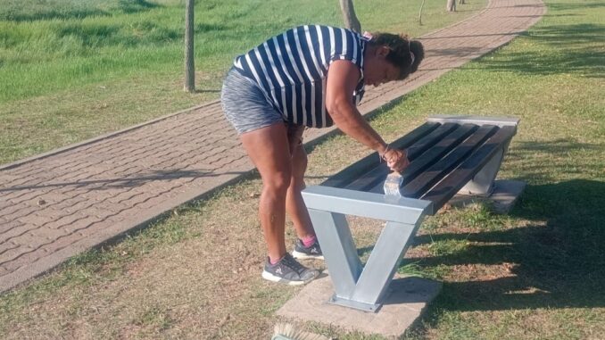 Se ofrecieron a pintar los bancos del sector de termas en agradecimiento a nuestra localidad que todos los años los recibe en una ciudad ordenada, tranquila y muy prolija.