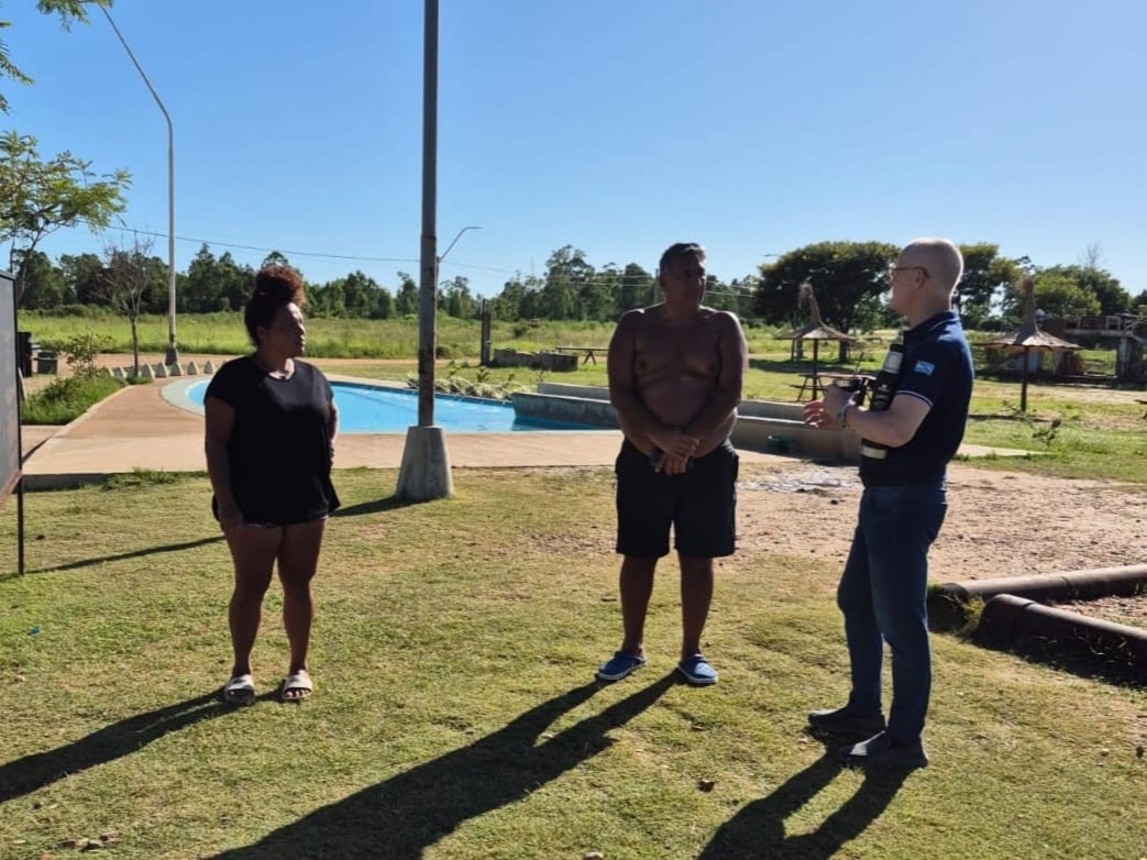 Débora y Alejandro son turistas de Coronel Brandsen, provincia de Buenos Aires, que hace 7 años vienen de visita a Santa Ana en motorhome a la zona de camping, playas y ahora a termas.