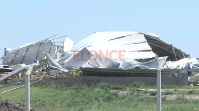 El fuerte temporal del domingo por la madrugada provocó destrozos en galpones ubicados sobre la ruta 12, en el Parque Industrial de Crespo. De cuatro, tres fueron completamente derribados por las fuertes ráfagas. Se trata de espacios recientemente alquilados por empresas que los utilizaban como centros operativos y depósitos.
