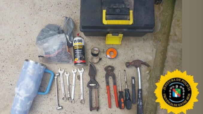 Tras una denuncia realizada por la mañana, este lunes, la Policía llegó a un domicilio en calle Sergio Burna donde secuestraron una caja con herramientas y un termo Stanley que habrían sido llevados al lugar por el hijo de la moradora. Los elementos quedaron a disposición de la Justicia.