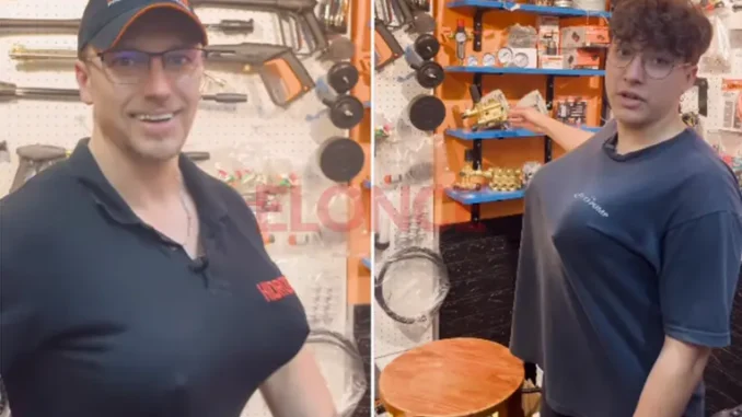 “Nos criticaron que no teníamos mujeres trabajando en nuestro negocio, que un par de lolas podía vender mucho más que nuestra cara, y ahora… qué me decís?”, dice el hombre que aparece en el video y tras ello se muestran con busto femenino y publicitando las herramientas que tienen para la venta en el local.