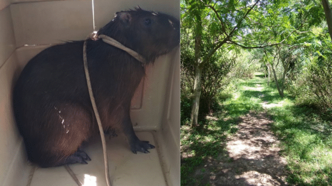 Al arribar al lugar, el personal procedió a la captura del animal utilizando una red y un lazo, logrando asegurar al capibara sin que sufriera lesiones. Posteriormente, fue trasladado en la unidad dentro de un canil y finalmente liberado en la reserva natural del Complejo Termal, devolviéndolo a su hábitat de manera segura.