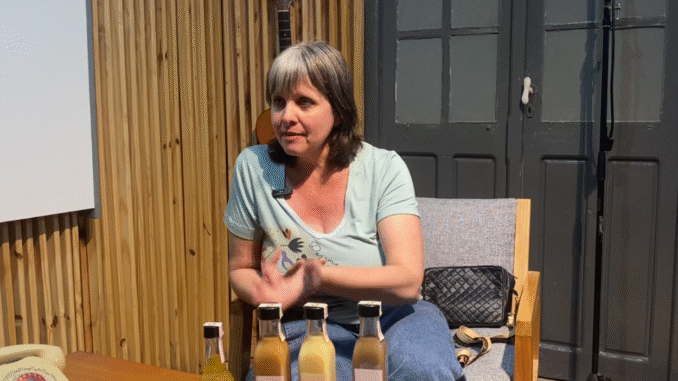 El programa “Vivencia Nuestra” convocó a la docente y emprendedora Celida Scatularo; ella en si visita contó sobre el trabajo que realiza con licores artesanales “Sabores del Alba”. En este sentido contó cómo surgió la idea (en pandemia), como se capacitó para la realización de la bebida, además explicó los tipos de licores que realiza y lo que tuvo que hacer para poder comercializarlos. Luego detalló cómo es el proceso para poder hacerlos y el tiempo que lleva cada uno