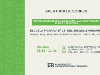 El Gobierno de Entre Ríos abrirá los sobres para reparaciones en el sistema de agua, gas, iluminación y pintura exterior en la escuela N° 23 […]