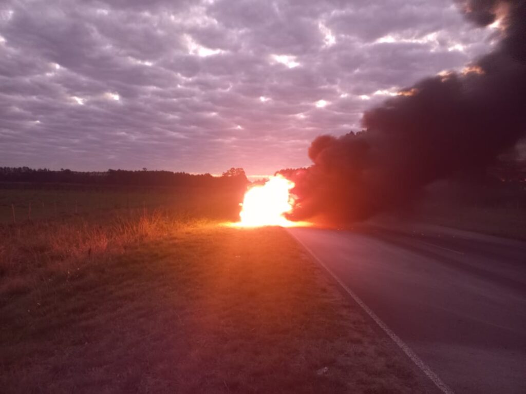 En la madrugada del día de hoy, a las 06:30 horas, el personal policial fue comisionado a Ruta 02 casi Cruce de calle 12, debido a un incendio en un automóvil.