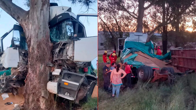 El accidente de tránsito tuvo lugar este lunes por la tarde en jurisdicción del departamento Uruguay. Ahí un camionero perdió el control de su transporte y terminó contra un árbol.