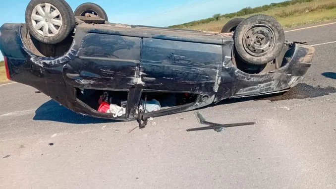 El accidente ocurrió esta mañana a la altura del kilómetro 17,5, cerca de Gualeguaychú. Un Renault Logan que viajaba desde Zárate hacia Corrientes volcó tras perder el control. Cuatro ocupantes sufrieron lesiones leves y uno resultó con heridas graves.