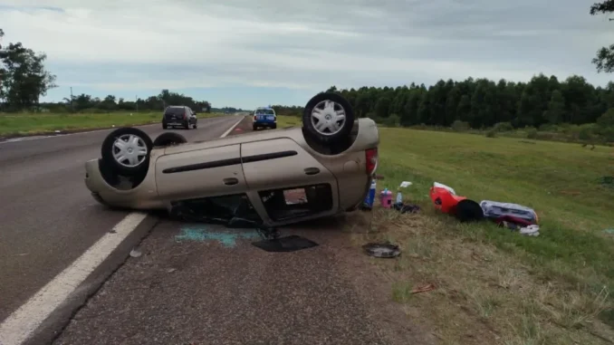 Por causas que se tratan de establecer, un hombre de 61 años, oriundo de la provincia de Buenos Aires, perdió el control del vehículo que conducía, un automóvil marca Renault Clio, lo que provocó que el rodado despistara y volcara sobre la traza de la autovía.