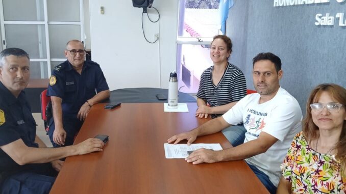 Esta mañana, la Presidente Municipal Vanina Perini, junto a los concejales Mauro Borget, Marta Busatto, y el secretario de Gobierno, Diego Cortiana, mantuvieron una reunión con autoridades de la Jefatura de Policía del Departamento Federación, en la Sala “Lorenzo Malgarín” del HCD de la Municipalidad de Villa del Rosario.