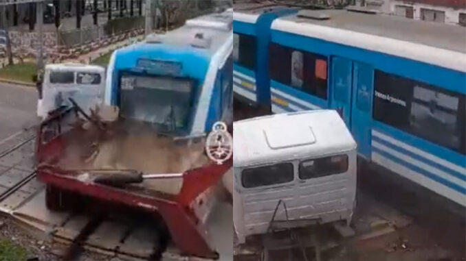 La línea ferroviaria del Roca no tuvo tiempo de impedir el impacto contra un camión que pasó por las vías del tren al mismo momento. Hubo seis personas que resultaron heridas por el hecho. (Quilmes Bs.As.)
